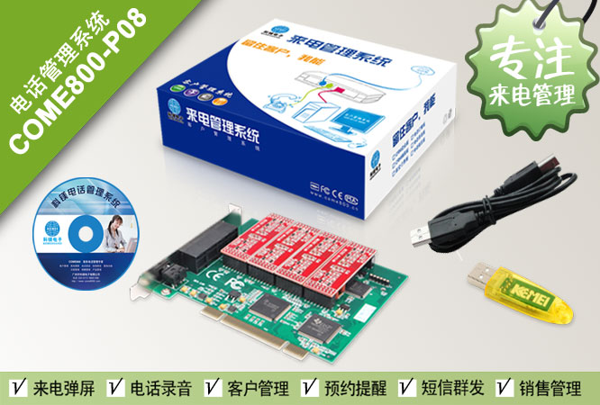 科鎂來電管理系統(tǒng)軟件是通用的,硬件分為1路,2路,4路,8路,16路,30路最多128路。硬件的安裝及連接方式略有區(qū)別,如果您想了解更詳細(xì)的信息,請(qǐng)根據(jù)您的實(shí)際要求選擇對(duì)應(yīng)的產(chǎn)品: