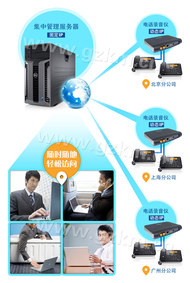 2.1.通過互聯(lián)網(wǎng)集中管理各分公司的電話錄音儀: