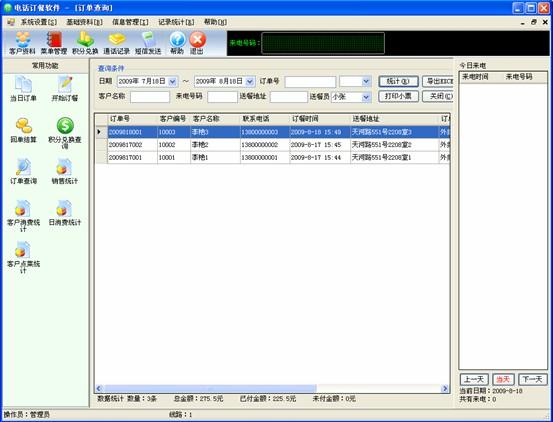 三、電話訂餐系統(tǒng)統(tǒng)計分析功能