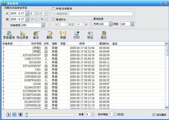 在訂餐通話中,系統(tǒng)會實時錄音,支持隨時查詢回放,方便電話服務(wù)員核實和查詢,可作為人員培訓(xùn)的參考,亦可以避免丟單、漏單、記錯地址、超時送餐、客戶拒收等情況的發(fā)生,有效保障服務(wù)質(zhì)量同時還加強(qiáng)內(nèi)部監(jiān)管體系。通話自動錄音功能:對通話過程無任何影響,錄音文件自動壓縮,80G硬盤約可存儲1年左右的通話,可隨時聽取錄音文件避免遺忘通話內(nèi)容,也可作為解決糾紛的依據(jù)。