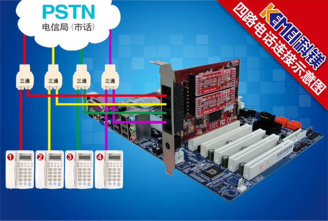 COME800-WD04 4家總店,4條電話線,4個(gè)接線人員