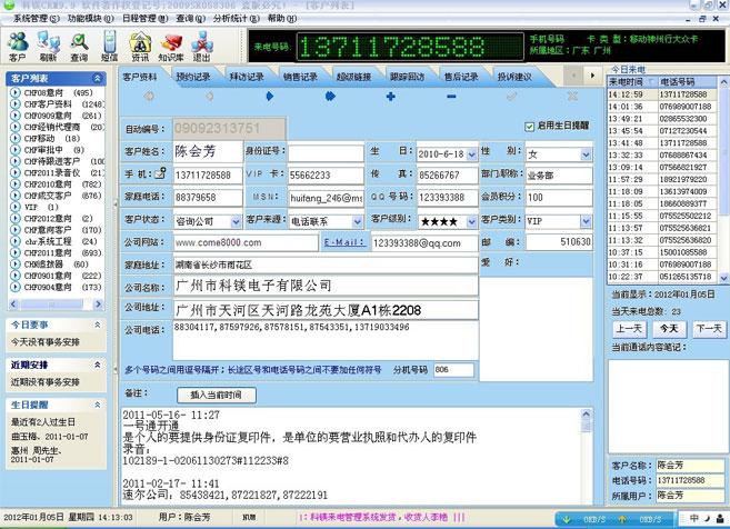 當(dāng)有客戶打進(jìn)電話時(shí),COME800來電管理系統(tǒng)會在您電腦的桌面上彈出一大窗口,里面包括客戶的所有詳細(xì)信息,看起來更直觀。不但能看到對方的電話號碼,也能看到是從哪個(gè)地方打來的!