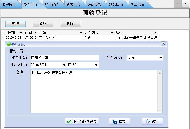 8、針對某個(gè)客戶的預(yù)約記錄/拜訪記錄/銷售記錄/售后記錄一目了然;