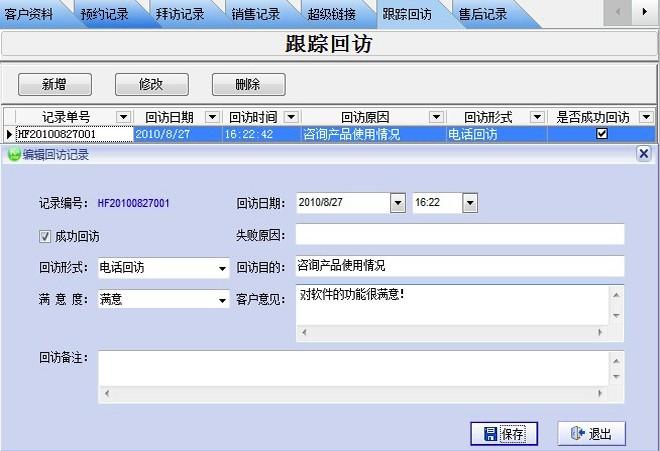 如果講這套系統(tǒng)也能運(yùn)用于客戶售后服務(wù),例如通過系統(tǒng)客戶的跟蹤回訪記錄,企業(yè)可以了解和改善產(chǎn)品的質(zhì)量。