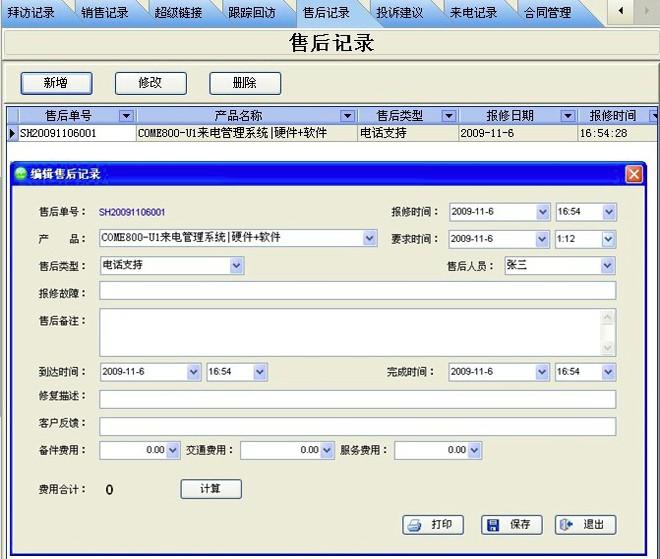 售后記錄也是生產(chǎn)廠家企業(yè)常用的功能之一,有了該系統(tǒng)可以清楚地知道某個(gè)客戶使用了某個(gè)產(chǎn)品,經(jīng)常出現(xiàn)過什么問題,是由哪一位工作人員進(jìn)行服務(wù)的,一切都清清楚楚。