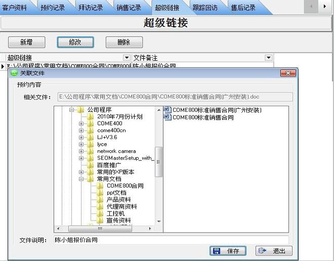 針對該客戶所有相關(guān)的拜訪記錄可以全部輸入系統(tǒng),方便查詢客戶往來。