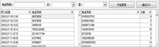 您可以根據(jù)電話號碼來查詢一段時(shí)間內(nèi)的來電記錄,并分析該號碼共來電多少,不輸入電話號碼,系統(tǒng)默認(rèn)所有電話號碼,并可以將來電記錄導(dǎo)出EXCEL表格。