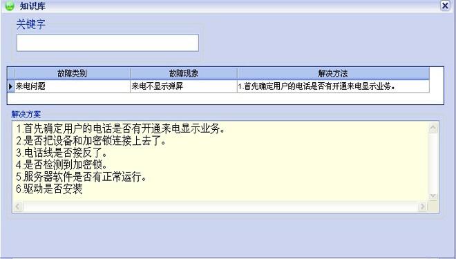 此功能主要針對于剛?cè)肼毜目头藛T,由于他們對專業(yè)知識還不是很熟悉,則可以通過知識庫,根據(jù)客戶提出的問題,找出統(tǒng)一標(biāo)準(zhǔn)的解決方法。