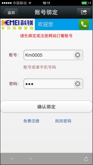 | 5、網(wǎng)站注冊用戶,可直接與微信綁定: | 6點(diǎn)擊下圖中的我要訂餐,如下圖所示: |