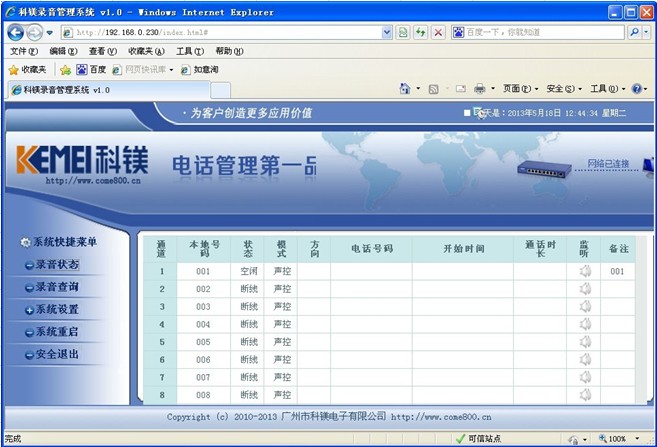 2.1.通過(guò)互聯(lián)網(wǎng)集中管理各分公司的電話(huà)錄音儀: