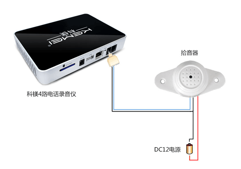 錄音儀與拾音器連接示意圖: