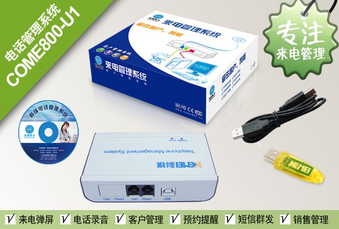 一、型號:COME800-U1 二、說明:USB設(shè)備,1臺電腦管理1條電話線,增加客戶端軟件可以實現(xiàn)多臺電腦來電彈屏。當(dāng)客戶來電時,在電腦上立即彈出客戶的姓名、電話、地址、公司名字、公司地址、銷售記錄、備注等重要信息。能拉近話務(wù)員與客戶之間的距離,提高客戶滿意度促使業(yè)務(wù)成交,保證服務(wù)質(zhì)量;不僅如此,科鎂來電管理系統(tǒng)還能為企業(yè)建立客戶數(shù)據(jù)庫,永久保存客戶資料,有效防止因業(yè)務(wù)人員的離職而損失公司利益,避免公司內(nèi)部業(yè)務(wù)人員撞單,規(guī)范管理業(yè)務(wù)流程。