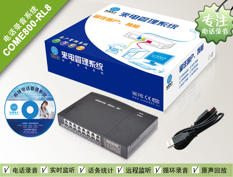 一、科鎂8路標準版電話錄音盒功能特點: